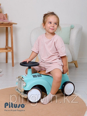 Каталка подойдет как для прогулок на улице, так и использования в квартире, в доме. Ребенок может сам управлять машинкой, отталкиваясь ногами и поворачивая руль, в игровой форме развивая навыки координации и равновесие.