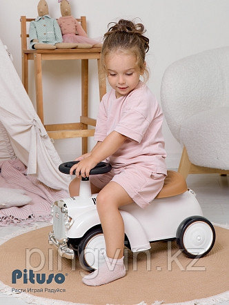 Каталка подойдет как для прогулок на улице, так и использования в квартире, в доме. Ребенок может сам управлять машинкой, отталкиваясь ногами и поворачивая руль, в игровой форме развивая навыки координации и равновесие.
