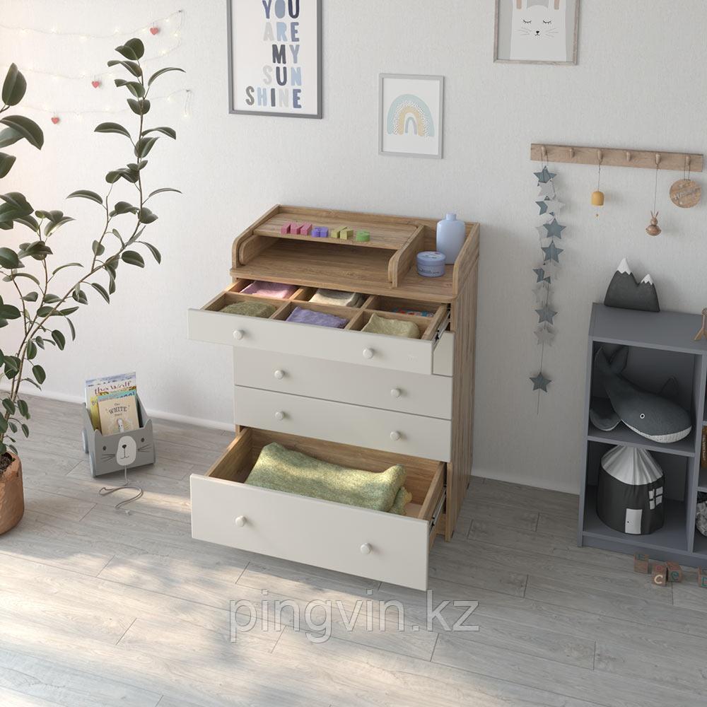Пеленальный комод Taun - первый из линейки оригинальной дизайнерской детской мебели бренда Mihaylov Design. Элегантный, выполненный в современном стиле и удобный пеленальный комод, в комбинациях контрастных оттенков благородной древесины с нежными, приятными на ощупь, белыми или бежевыми фасадами. В комоде используется пеленальный столик с простым и надежным, скрытым механизмом раскладывания. Есть отделение рядом с пеленальным столиком для средств по уходу за малышом в быстром доступе. Комод очень вместительный, благодаря пяти ящикам, которые установлены на надежные шариковые направляющие бесшумного хода. Нижний ящик большей глубины, а верхний с органайзером для удобства сортировки детских вещей.
